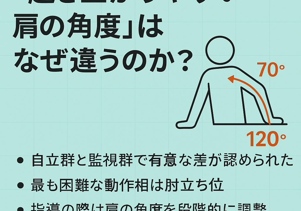 今回の研究は、 自立して起き上がれる人と、見守りが必要な人では、肩の角度がどう違うのかを詳しく調べています。